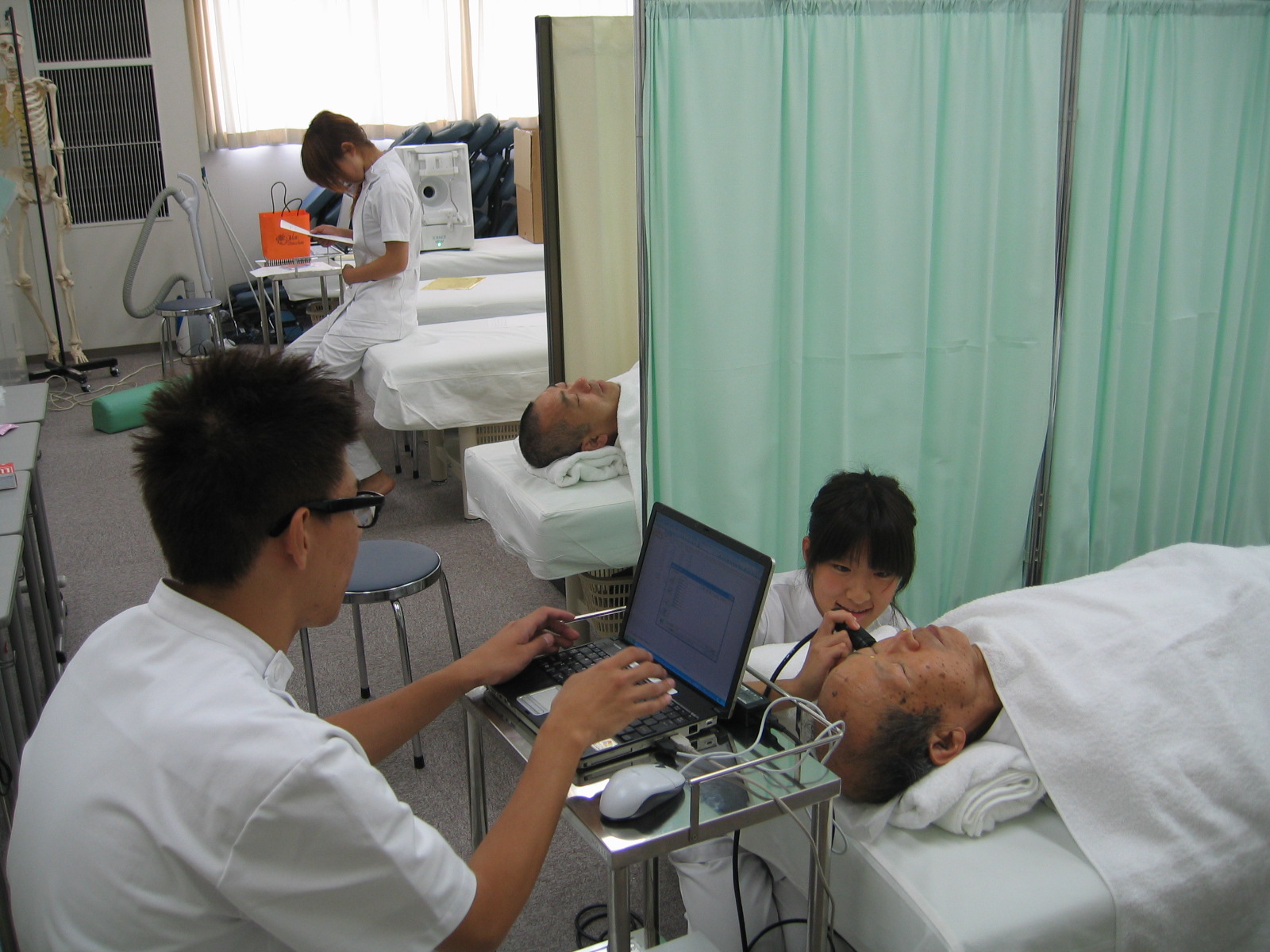 今回の実験は、皮膚の「粘弾性の変化」を測定し、顔鍼の効果を検証しようというもの。 10月8日に京都の「みやこめっせ」で開催される学術大会でのポスター展示とともに、10月11日(日)12日(月)の紅華祭でも発表会を実施する予定です。