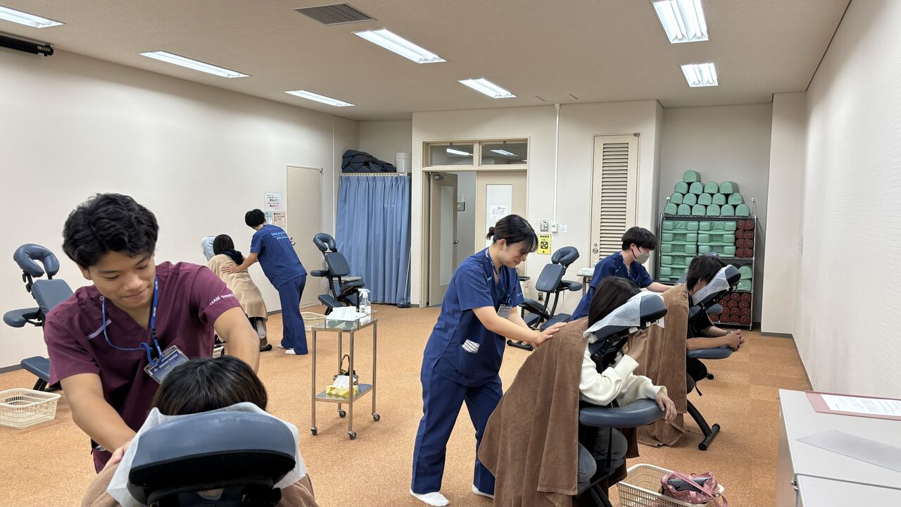 また2年生は、「肩背部のあんま臨床実習」を実施。